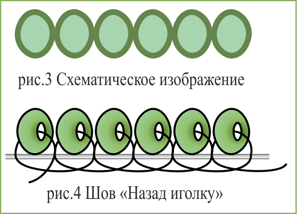 Цепочки из овалов, изображенные на схеме (рис.3), вышиваются швом «Назад иголку».