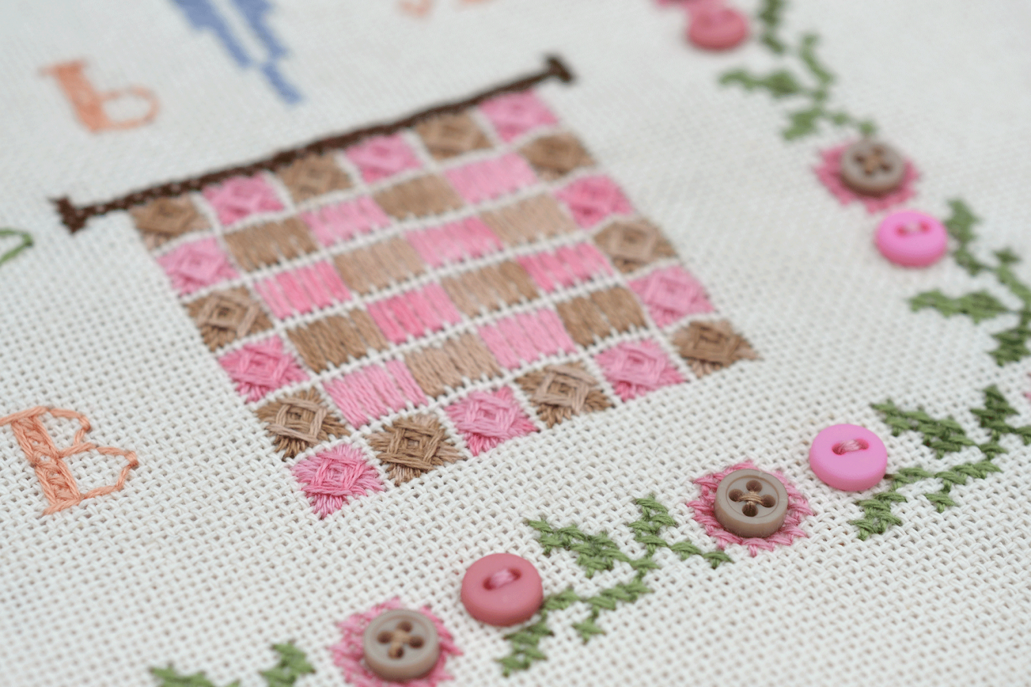The stitches present in the design are ray stitches, satin, Norwich stitch, Rhodes stitch, lazy daisy, chain stitch.