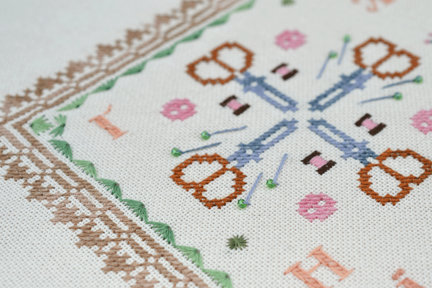- color scheme of embroidery with a QR code for downloading an electronic file;