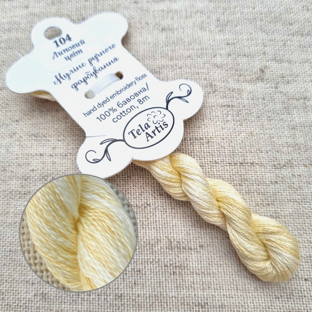 Hand-dyed floss hand-dyed by Tela Artis, based on DMC, 8m per skein, 6 threads per strand.