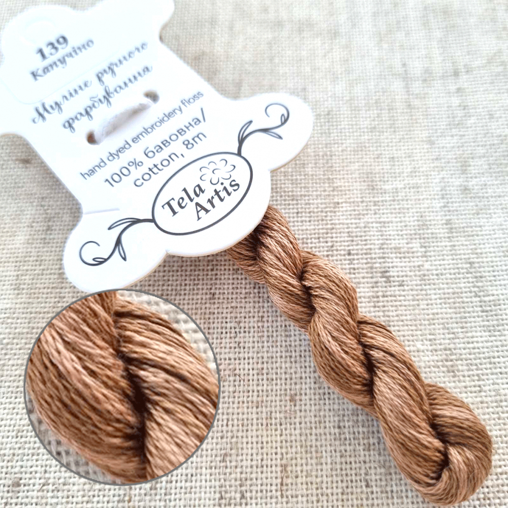 Hand-dyed floss hand-dyed by Tela Artis, based on DMC, 8m per skein, 6 threads per strand.