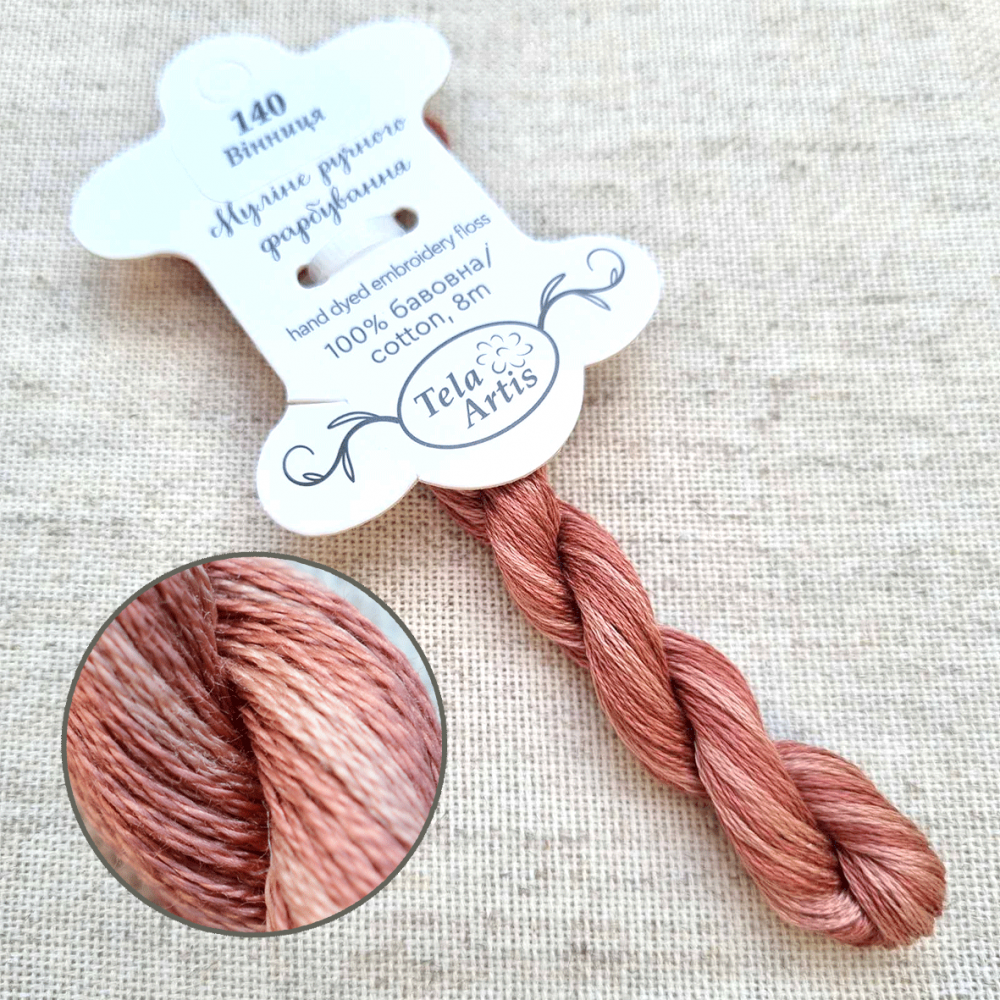 Hand-dyed floss hand-dyed by Tela Artis, based on DMC, 8m per skein, 6 threads per strand.