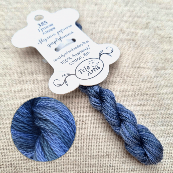 Hand-dyed floss hand-dyed by Tela Artis, based on DMC, 8m per skein, 6 threads per strand.