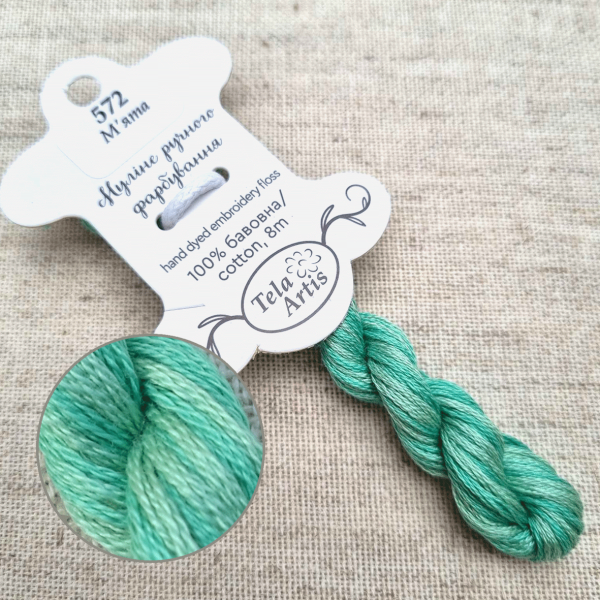 Hand-dyed floss hand-dyed by Tela Artis, based on DMC, 8m per skein, 6 threads per strand.