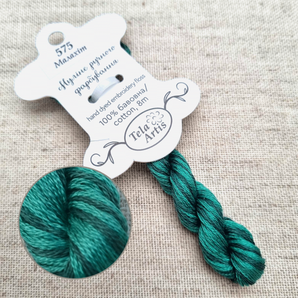 Hand-dyed floss hand-dyed by Tela Artis, based on DMC, 8m per skein, 6 threads per strand.