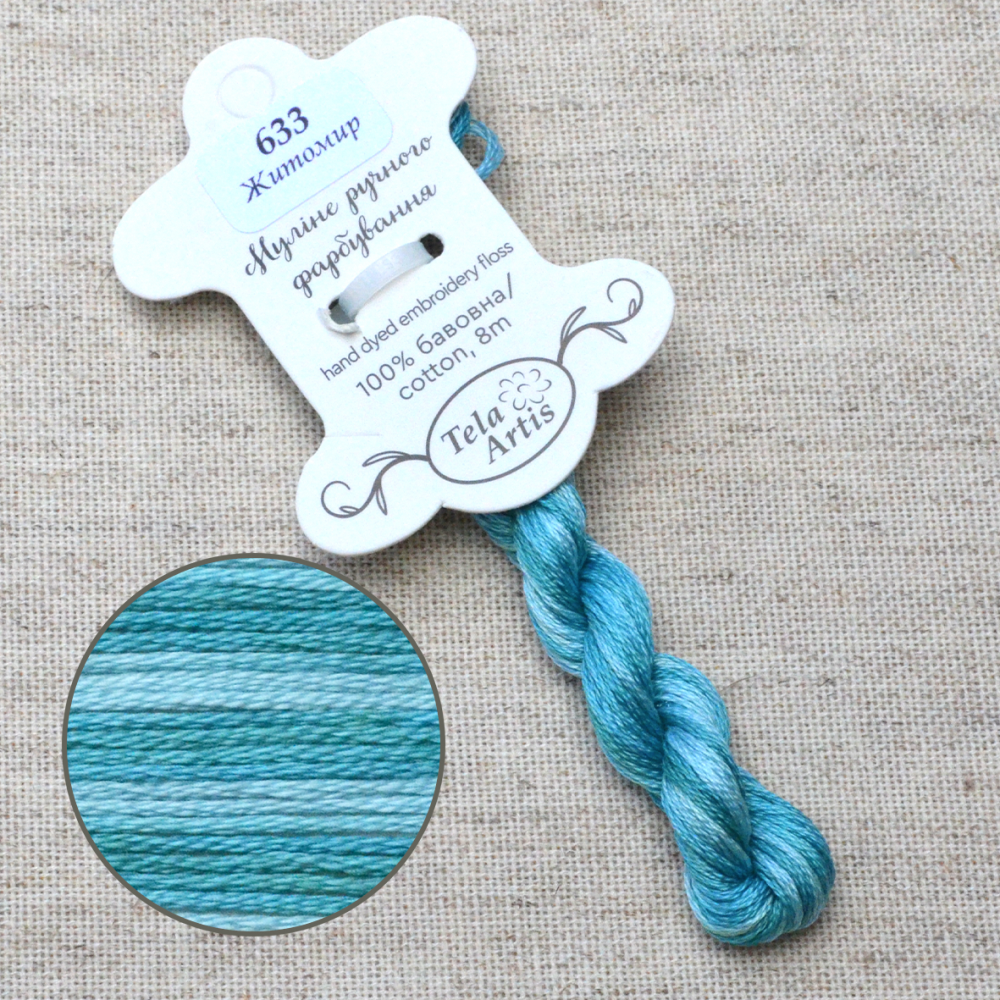 Hand-dyed floss hand-dyed by Tela Artis, based on DMC, 8m per skein, 6 threads per strand.