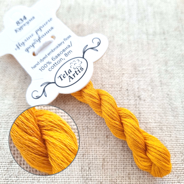 Hand-dyed floss hand-dyed by Tela Artis, based on DMC, 8m per skein, 6 threads per strand.