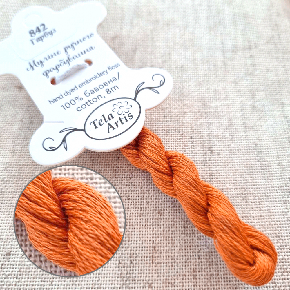 Hand-dyed floss hand-dyed by Tela Artis, based on DMC, 8m per skein, 6 threads per strand.