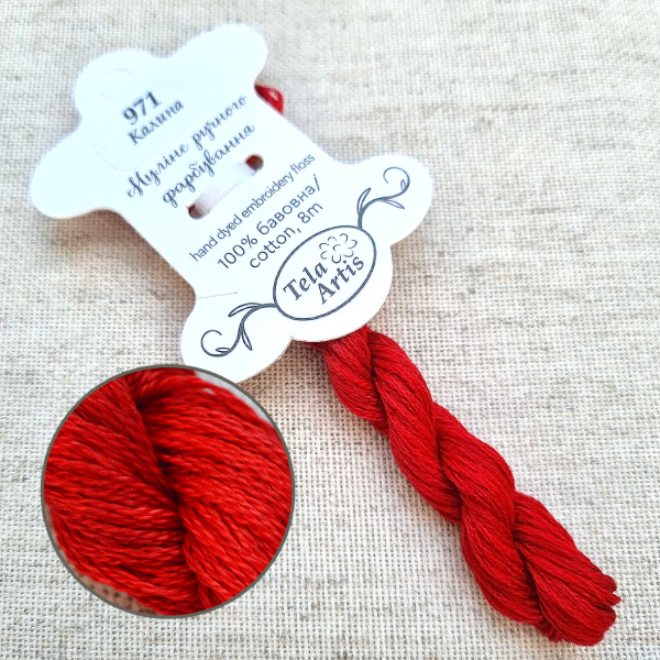 Hand-dyed floss hand-dyed by Tela Artis, based on DMC, 8m per skein, 6 threads per strand.