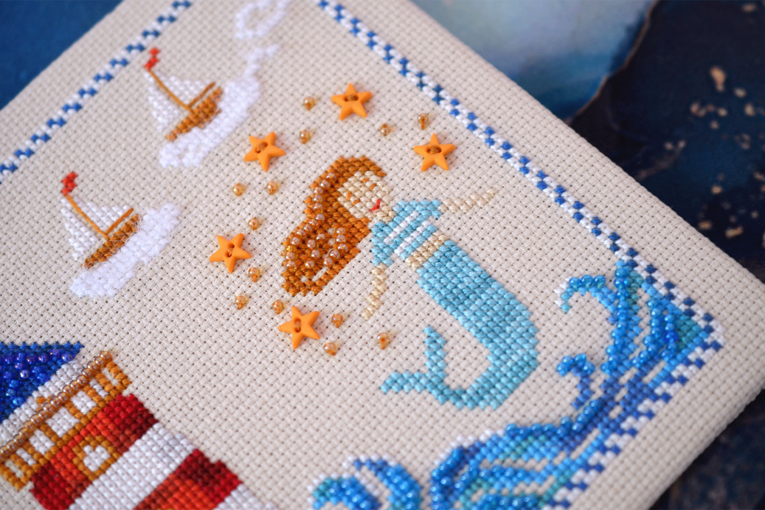 The recommended fabric is Zweigart AIDA 16ct 770, size 25x25cm