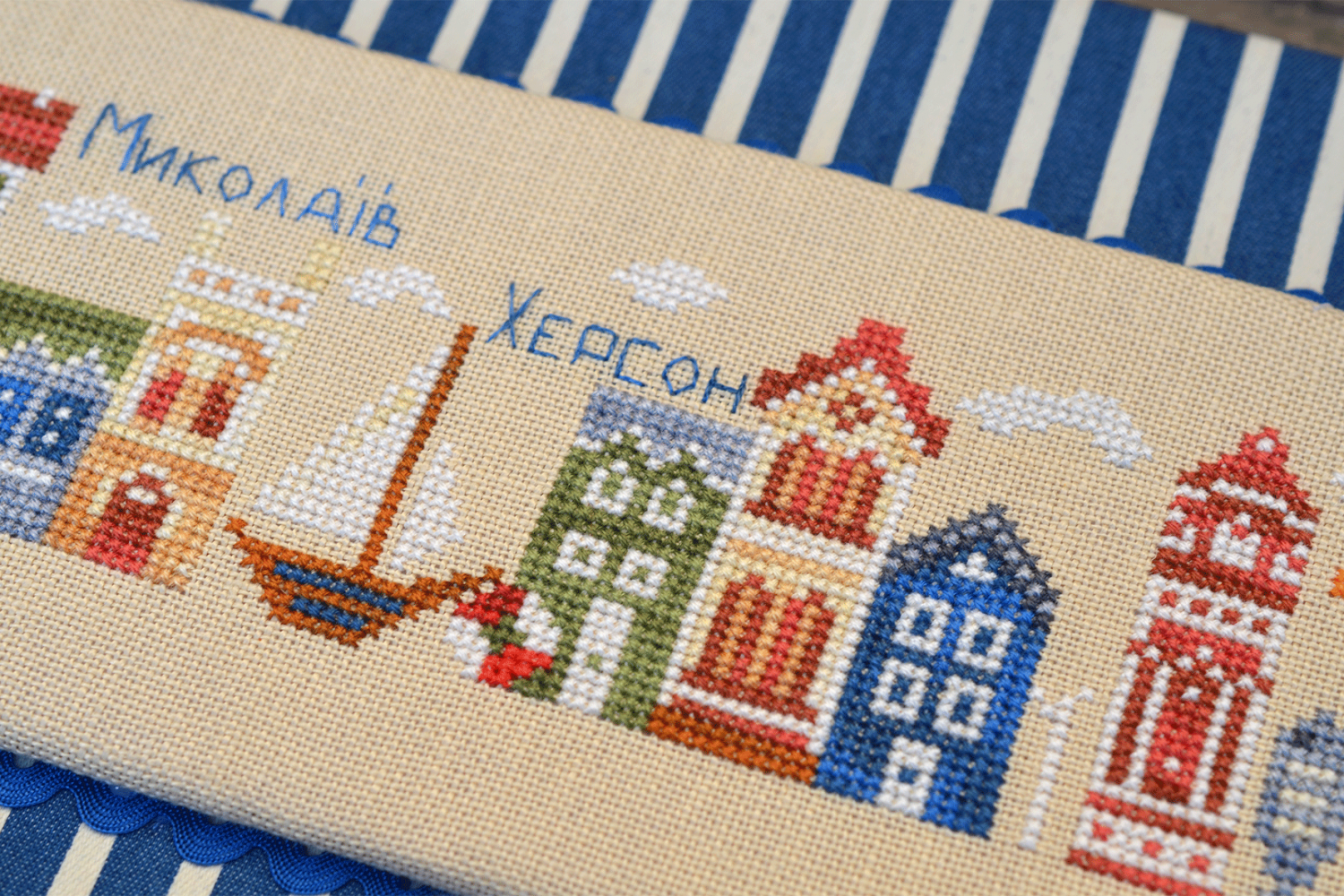 The recommended fabric is Zweigart Cashel 233, size 16x47cm