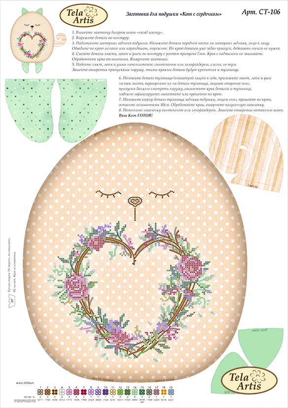На полотно нанесен рисунок лицевой стороны подушки и подробная инструкция по изготовлению подушки. Требуется дополнительное приобретение материала задника подушки
