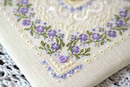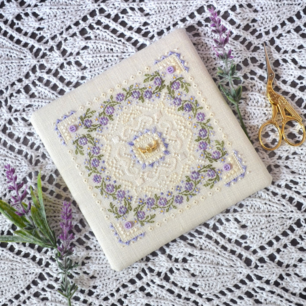 The recommended fabric is Zweigart Cashel 99, size 23x23cm