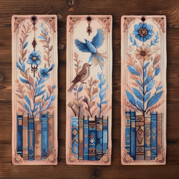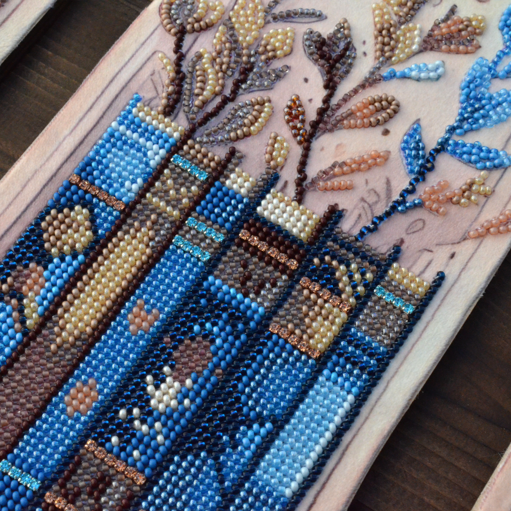 The embroidery pattern is printed on velour, and the kit includes Preciosa Ornela beads, a rhinestone chain, and a beading needle.