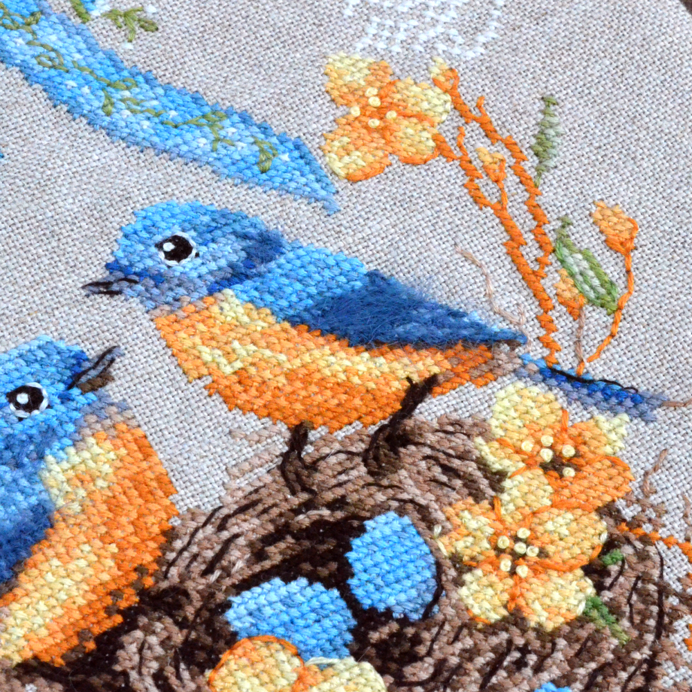 Techniques: cross-stitch, large cross-stitch, backstitch, French knots