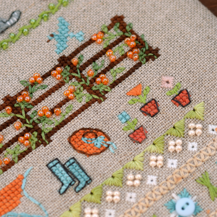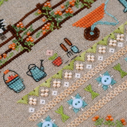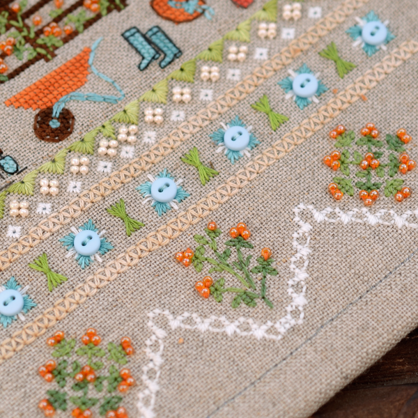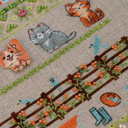The recommended fabric is Zweigart Belfast 53, size 26x42cm