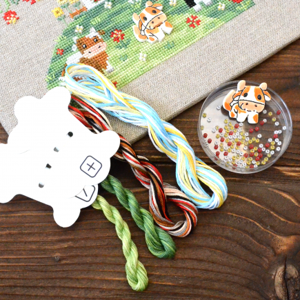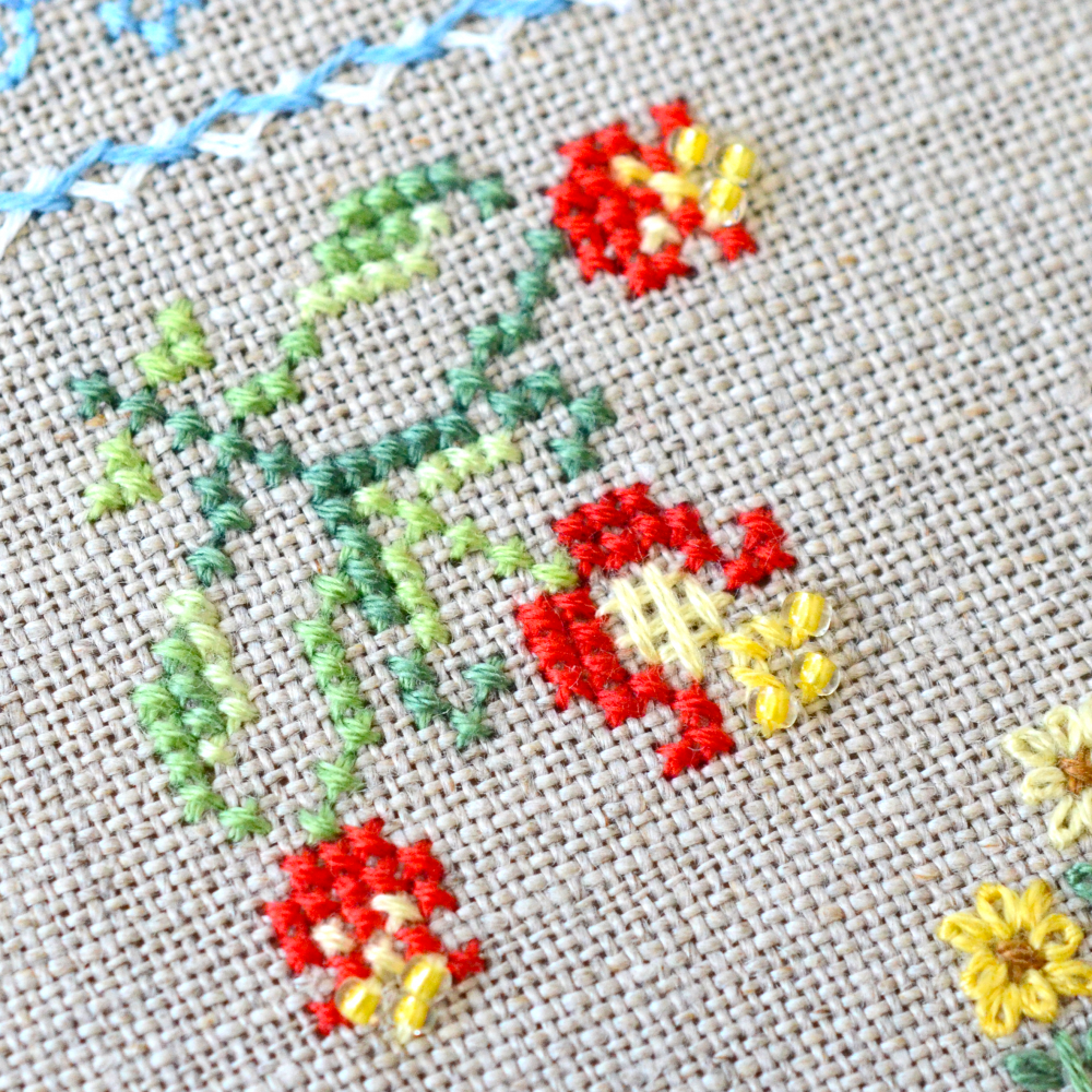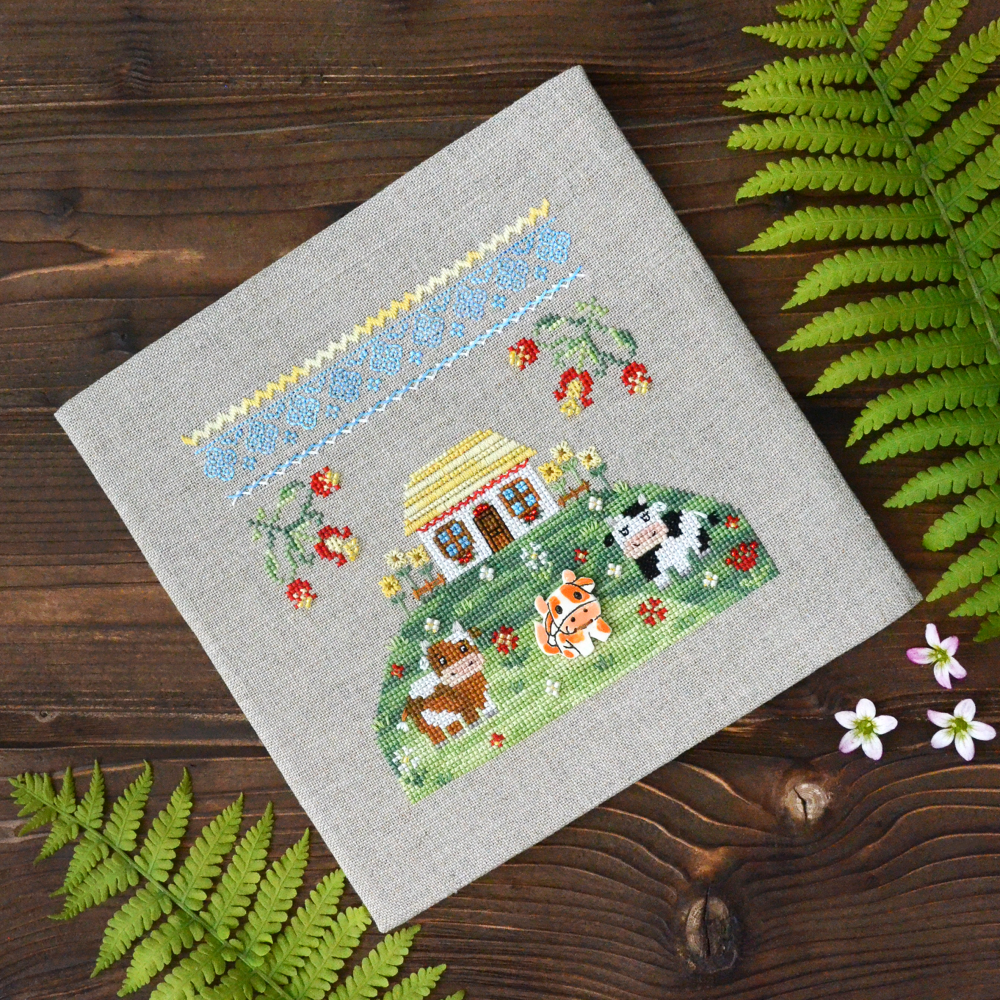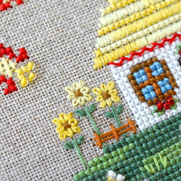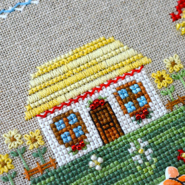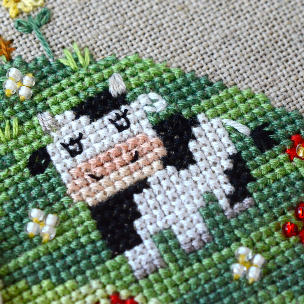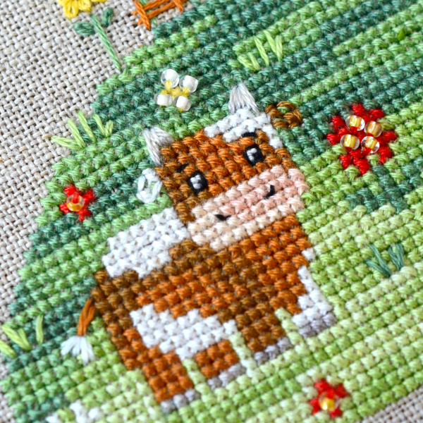 In addition to the cross stitch, there is backstitch, fan stitches, flooring, goat.
