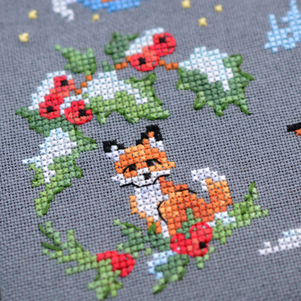 Cross Stitch Kit with Hand-Dyed Floss, Beads & Backstitch